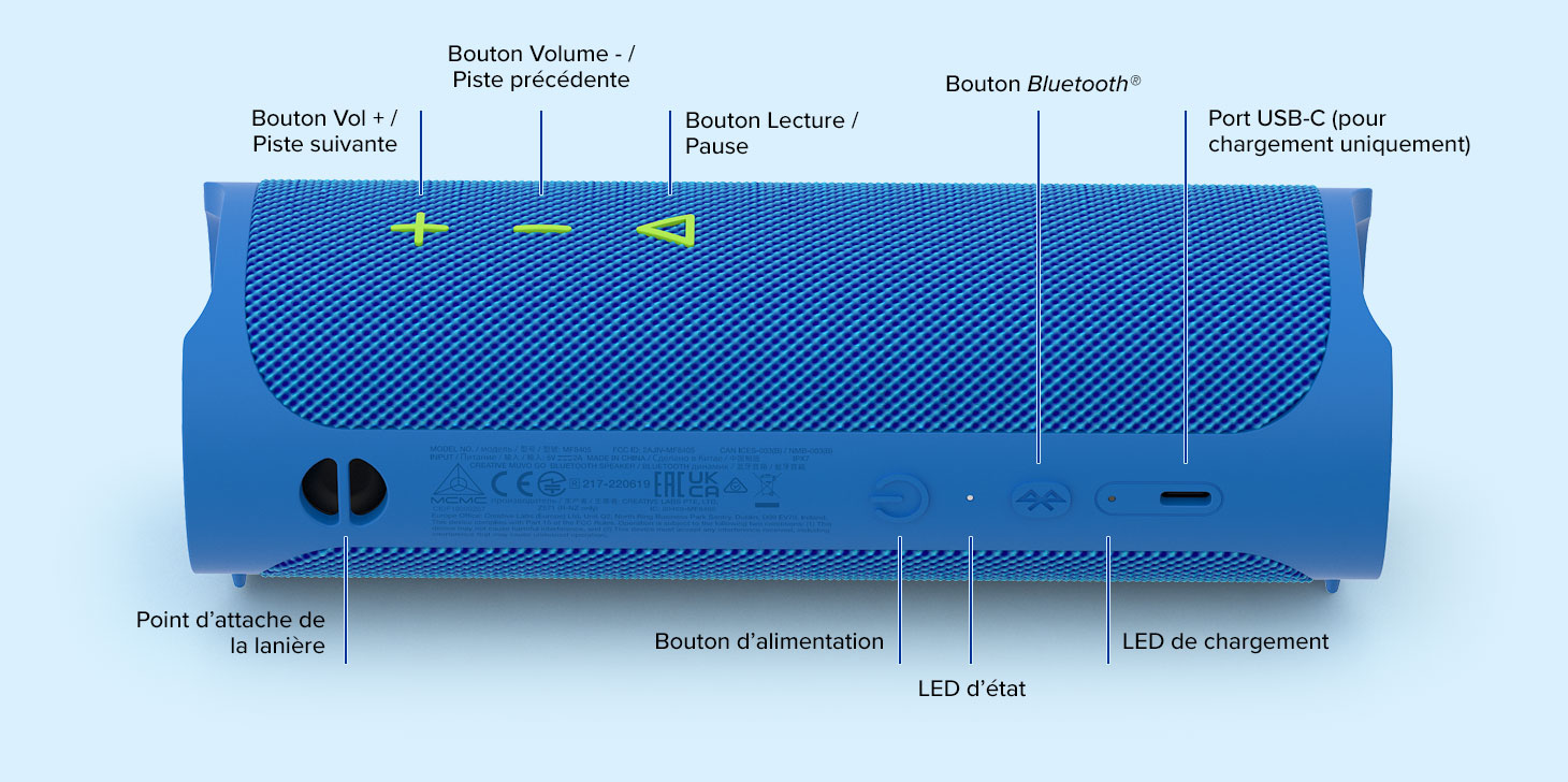 Conçu pour les grands espaces, notre tout nouveau Creative MUVO Go, étanche et certifié IPX7, est conçu pour résister à toutes sortes de conditions météorologiques et d'aventures : randonnée en montagne, soirée piscine, barbecue dans le jardin, etc. Avec une autonomie remarquable allant jusqu'à 18 heures et d'autres fonctions pratiques comme le Bluetooth 5.3, il vous met au défi de repousser ses limites - ça vous dit une randonnée à vélo aux quatre coins du pays ?