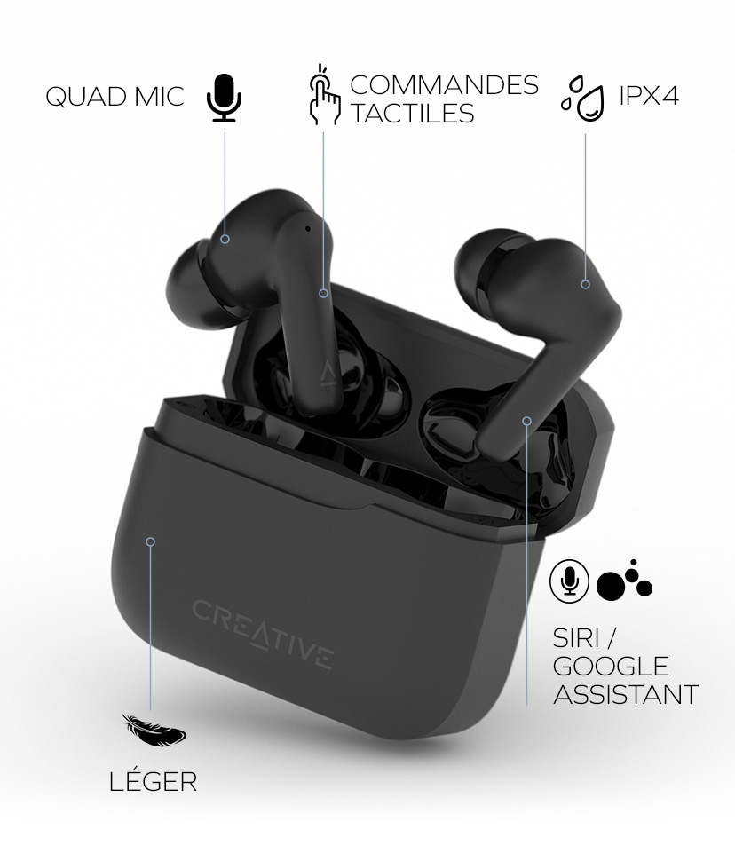 *Les écouteurs SXFI READY fonctionnent uniquement avec les fichiers enregistrés localement sur votre appareil. Ils ne prennent pas en charge la diffusion de contenu hébergé sur des services tiers tels que Spotify, YouTube, Netflix.