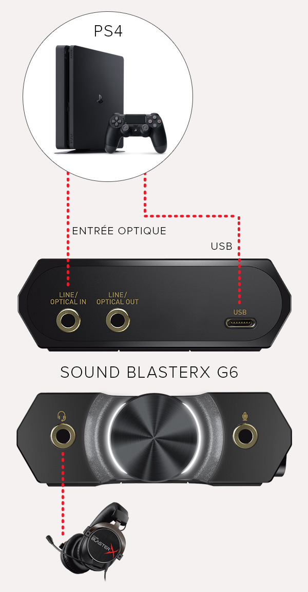 Améliorez votre jeu ! Mise à jour exceptionnelle par rapport à notre Sound BlasterX G5, le Sound BlasterX G6 améliore immédiatement votre son, vous donnant une expérience beaucoup plus agréable par rapport à ce que vous obtenez de l'audio par défaut de la carte mère ou de tout autre DAC de jeu USB sur le marché.
