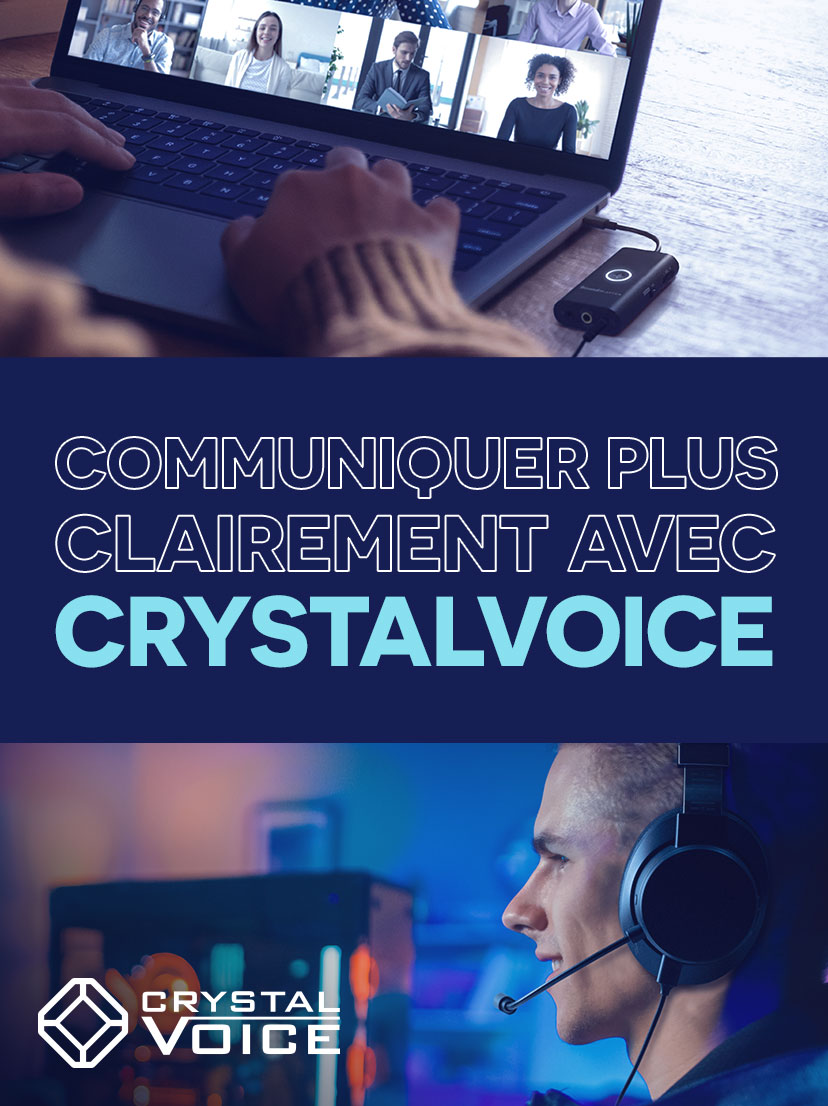 Conçu pour produire une fidélité de la voix à toute épreuve, vous pouvez utiliser CrystalVoice pour toute communication en ligne, que ce soient des appels en vidéo conférence, des jeux multijoueurs, ou pour prendre des nouvelles de votre famille et de vos amis.